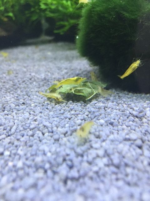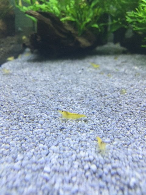 Gelbe Garnelen aus eigener Zucht. Die Tiere sind etwa 1,5-2,0 cm groß und von schöner, gelber Farbe. Die Garnelen werden auf einem Kiesboden mit Leitungswasser gezüchtet. Die Farben kommen auf einem dunklem Boden besonders zur Geltung. Halten Sie die Tiere in Gruppen ab 10 Individuen. Erhältliche in mittlerem Grad und hohem Grad (backstripe).