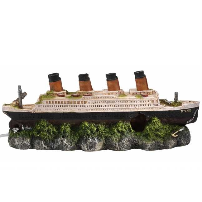 This faithfully reproduced Aqua Della Titanic with airstone (39x11x17 cm) is made of polyester resin. It is completely non-toxic and has no effect on the biological balance of your aquarium. Read more