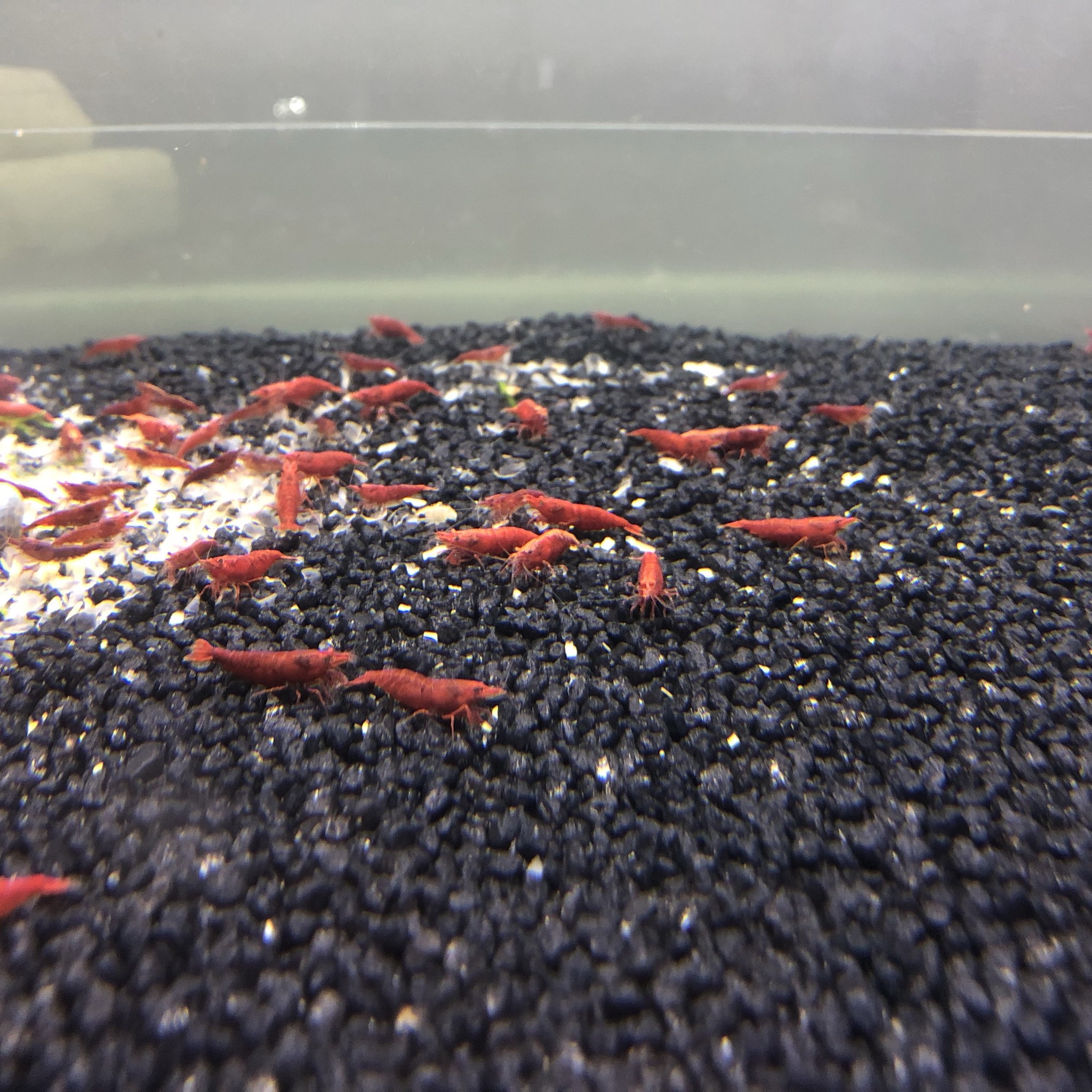 Deze vuurgarnalen zijn ongeveer 1.5-2.0 cm groot. Vuurgarnalen hebben super dekkende rode kleur. De garnalen worden hier gekweekt op leidingwater en een gewone grindbodem. Komen het mooiste uit op een donkere bodem. Kunnen het best in een groep van minimaal 10 gehouden worden.